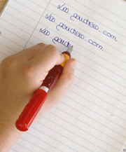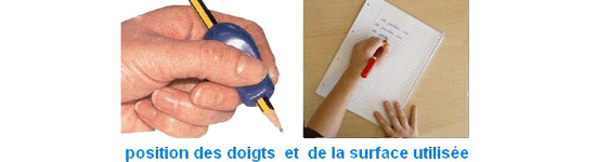 […]Qu’il soit droitier ou gaucher,l’enfant doit apprendre à tenir ses instruments sans crisper la main (en utilisant la pince du pouce et de l’index et le support du majeur), à disposer la surface qu’il utilise dans le prolongement de l’avant-bras (correctement placé) tout en adoptant une posture adéquate.[…]