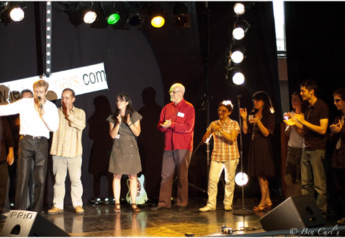 Pour animer cette fête nous avions fait appel à six artistes gauchers. Quatre artistes professionnels aux talents confirmés : Andy, Chris, François, Jacky et deux jeunes artistes : Delphine Delchacha (24 ans) et Tony Kwyjibo (19 ans) auteurs-compositeurs-interprètes aux talents prometteurs.