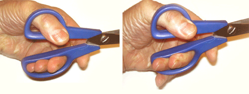 Que l’on soit droitier ou gaucher la manière de tenir une paire de ciseaux est identique.