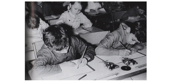 L’école des années 50 et les gauchers. Au siècle dernier on apprenait aux élèves gauchers à écrire plutôt avec leur main droite.