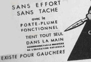Dans la même publication on peut voir aussi une réclame datant de la même époque et qui vente les mérites d’un stylo plume tout en précisant : EXISTE POUR GAUCHERS