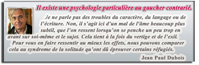 Pour éviter de regrettables confusions il faut savoir de qui on parle exactement. Notre propos, ici, est donc consacré aux « gauchers contrariés » tel que nous venons de les définir.