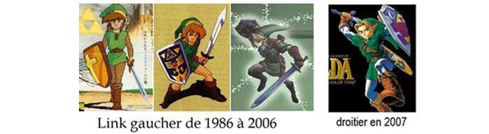 Ainsi dans le dernier opus, Zelda : The Twilight Princess (version Wii uniquement), Link est devenu droitier après une vingtaine d’année en tant que gaucher. Désormais pour la version Wii, le soleil se lève à l’ouest ! En effet afin de se simplifier la tâche, les créateurs du jeu ont eu recours à une petite astuce de programmation pour réaliser ce changement. Au lieu de refaire le modèle de Link pour le transformer en droitier, ils se sont contentés d’utiliser un effet miroir pour tout le jeu.